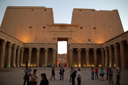 Vẻ hấp dẫn của Kom Ombo càng toát lên khi trời về chiều, tắm trong nắng vàng rực rỡ của ánh hoàng hôn, ngôi đền như càng sống động khi in bóng dưới dòng sông Nile thơ mộng và xanh mát. Sau đó, đoàn sử dụng xe ngựa (15’/chiều) để khởi hành tham quan Đền Edfu trong buổi sáng sớm. Đây là ngôi đền được bảo tồn tốt nhất từ thời Ai Cập cổ đại.